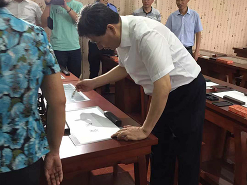 8月29日,江西省景德鎮(zhèn)市委常委、市委書(shū)記、軍分區(qū)黨委第一書(shū)記鐘志生在相關(guān)部門(mén)負(fù)責(zé)人的陪同下,在景德鎮(zhèn)二中參觀了華文眾合第五代智慧書(shū)法教室,即興潑墨揮毫體驗(yàn)后,鐘志生針對(duì)該設(shè)備的教學(xué)先進(jìn)性、產(chǎn)品易用性以及教學(xué)資源的豐富性方面給予了高度贊揚(yáng)。