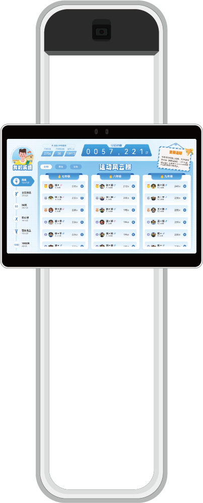 集高清智慧顯示屏與AI攝像頭于一體,通過AI運動視覺技術,全面賦能體育教學、智能測評與數據應用,涵蓋立定跳遠、十人AI跳繩等多個運動項目,支持優質教學視頻播放、多人同時測試、個人成績報告查看、運動排行榜展示等,有效解決傳統體育教學設備落后、依賴主觀經驗、難以精準化分析與個性化指導等痛點,讓體育教學真正實現“看得見、教得準、提得快”,并構建“教、學、練、測、評”一體化智慧體育新生態。