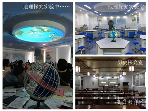 加量“學科教室”促核心素養(yǎng)達成 要讓學生適性成長,學科教室建設就顯得尤為突出。學科教室以培養(yǎng)學生學科核心素養(yǎng)為邏輯起點,構(gòu)建學科情境,配置豐富的學科資源,開展學科教學、實驗(體驗)和研究,促進學校學科體系建設。該區(qū)加量配備學科教室,目前配備地理學科教室2間、歷史學科教室1間、安全教育室1間、VR體驗館1間、創(chuàng)新科技館1間、數(shù)字書法教室1間等。蚌山區(qū)利用學科教室開展教學活動,承辦全市的學科教室研討課;區(qū)域內(nèi)共享安全教育室、VR體驗館、創(chuàng)新科技館的資源,開展學科及實踐活動。安徽省裝備中心進行創(chuàng)新實驗室及學科教室的專項調(diào)研時,對蚌山區(qū)學科教室的建設給予了高度評價。