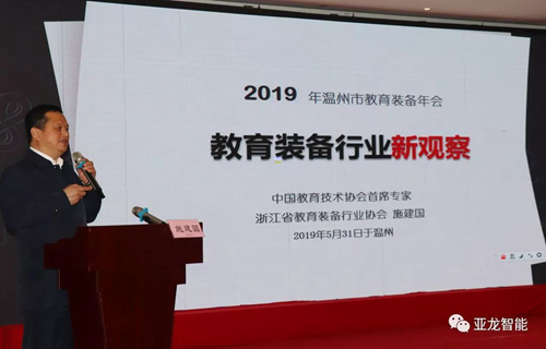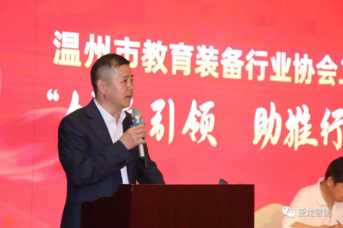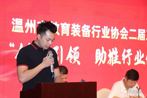 溫州市教育裝備和勤工儉學管理中心、溫州市電教館館長陳建淼致辭發言,肯定了近年來溫州市教育裝備行業協會的成績。他指出教育裝備產業不僅要服務于教育,同時也要促進教育事業向更高的層次發展。
