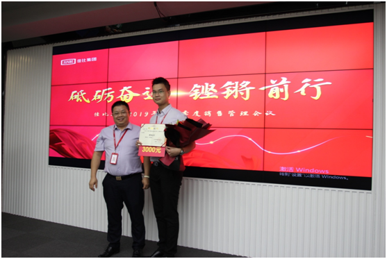 隨后進行了第三季度優(yōu)秀銷售員表彰大會,由集團董事長黃總、副董事長夏總、吳總分別為冠亞季軍獲獎?wù)哳C發(fā)了表彰證書和獎金,以此鼓勵工作優(yōu)秀、業(yè)績突出的銷售精英。在頒獎過程中,獲獎?wù)咦隽双@獎感言。他們紛紛表示,感謝集團提供的大平臺,才有機會展現(xiàn)自己、貢獻自己一份綿薄之力。感謝集團對自己成績的肯定和認(rèn)可,接下來,將會更加努力,團結(jié)一心,再創(chuàng)佳績。