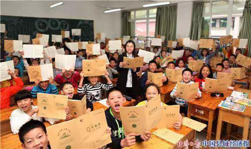 趁著這股“東風”,環保作業本一舉得到永川、秀山、江津、沙坪壩等10個區縣相關部門的認可,近80萬中小學生用上環保作業本。