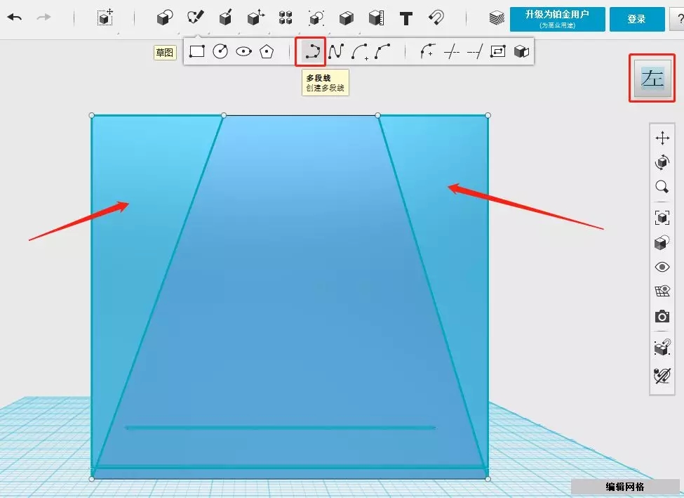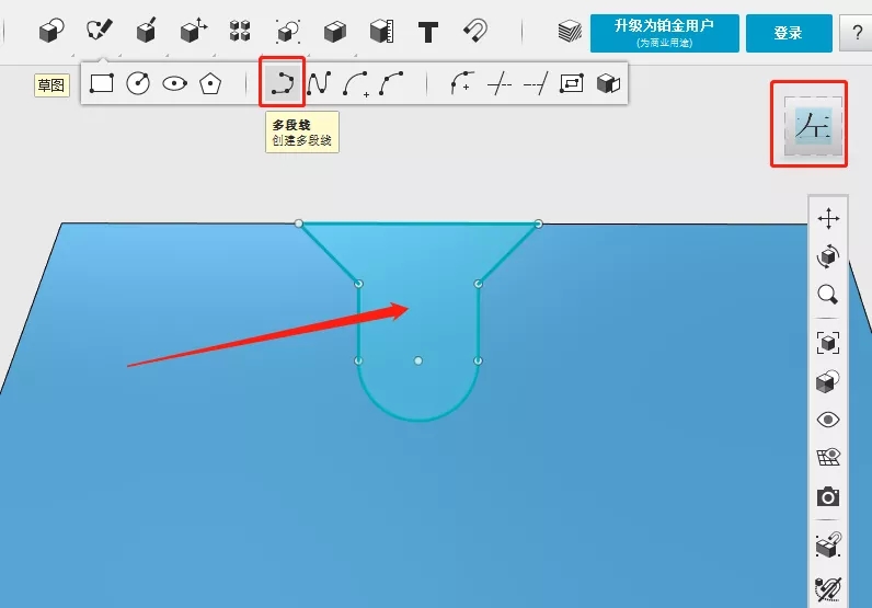 1、在圖形某一面上繪制線段時需要先選中模型的面,再點擊命令。