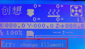 解決方法:當屏幕出現這種錯誤提示時,一般是耗材在斷料檢測部位斷裂了,只需重新裝載耗材即可。