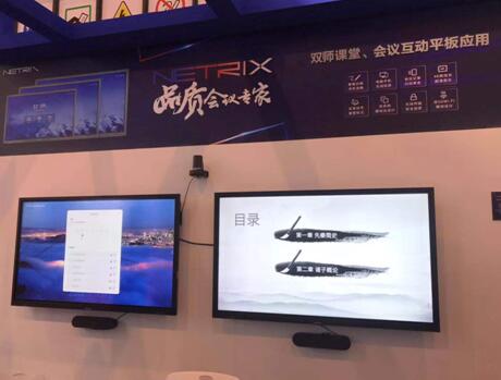 雙師課堂由最新上市的 “NETRIX品質會議專家”傾情打造,集“硬”技術和“軟”實力于一身的NETRIX讓雙師課堂擁有更智能、高品質的顯示體驗。兩臺75寸新品NETRIX智能交互平板的完美應用,實現了一對多實時在線授課,將名校名師課程通過實時直播傳授給其它校區學生,講師和學生還可隨時互動,最大化實現優質教學資源共享。NETRIX智能交互平板應用NEC色彩級桌面顯示器的引擎技術,令畫面顯示更精準、細膩。小于2mm低觸摸高度、1mm觸控精度、20點觸控數量的產品優勢讓觸控更加精準、靈敏。同時,NETRIX搭載的雙5G模塊全面迎合了5G時代來臨的趨勢。