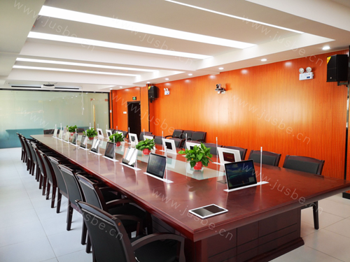 根據客戶需求及實地考量分析,佳比設計了一套20點位的智能無紙化會議系統解決方案。以此告別傳統單一、繁瑣的紙質會議時代,提供一個高效、智能、功能全面又節約環保的無紙化會議平臺,滿足各種日常工作會議、保密會議、專題會議、視頻會議等的組織召開。