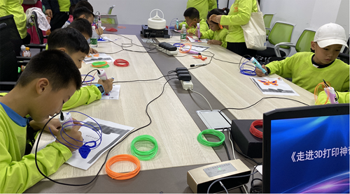 接下來的環節中,李老師帶領學生們進行3D打印筆的教學。通過幾分鐘的介紹,學生們就能快速上手操作3D打印筆進行繪畫了。小編不得不感嘆學生們的動手能力真強,能夠又快又好地完成作品。