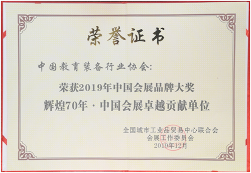 中國教育裝備行業(yè)協(xié)會榮獲2019年中國會展品牌大獎——輝煌70年·中國會展卓越貢獻單位