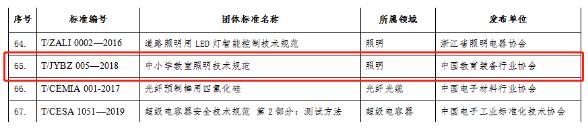 《中小學教室照明技術規范》被工信部評為 “2019年百項團體標準應用示范項目”