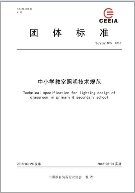 《中小學教室照明技術規范》(見圖2)由廈門立達信照明有限公司、浙江省教育技術中心、四川省教育廳技術物資裝備管理指導中心、中國質量認證中心、國家電光源質量監督檢驗中心(上海)、國家燈具質量監督檢驗中心、威凱檢測技術有限公司、東南大學電子科學與工程學院、蘇州市計量測試研究所、上海國幸能源科技發展有限公司、歐普照明股份有限公司、南京東暉光電有限公司、浙江晨輝光寶科技有限公司、浙江智慧照明技術有限公司、懷化市明城科技實業有限責任公司、四川九洲光電科技股份有限公司、浙江久良教育科技股份有限公司、廈門銀旭工貿有限公司等單位起草。標準規定了中小學教室照明產品技術要求、照明質量要求、現場測試方法、安裝施工要求、照明控制要求及照明裝置的維護和運行要求。