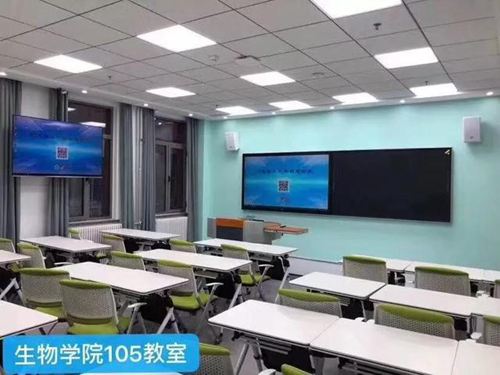 大連理工大學(xué)智慧教室中最常見到的智慧黑板應(yīng)用方案為:歐帝記憶黑板+單屏。馬克思主義學(xué)院、環(huán)境學(xué)院、生物學(xué)院等多個(gè)教室均選用了該方案。無論是基礎(chǔ)教學(xué)、小型研討,還是混合教學(xué),記憶黑板均能滿足需求。值得一提的是,記憶黑板不僅能夠同步顯示板書,方便學(xué)生讀識(shí),而且還能同步錄播板書內(nèi)容,便于教學(xué)交流、學(xué)生溫習(xí)等。