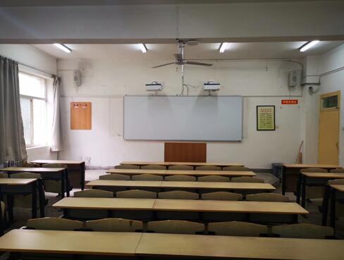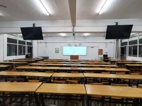 中型教室相對小型教室,面積更大,可容納近百名學生,尤其是教室兩側距離寬廣,需要投影畫面具有更大視角。NEC投影機智能融合功能在這里便發揮了巨大優勢,兩臺NEC CU4200XD采用正投多通道融合安裝,瞬間帶來色彩一致、大尺寸的高清畫面,確保了兩側和后臺的學生也能清清楚楚的看清文字內容,辨認每一處畫面細節。并且NEC CU4200XD使用超短焦技術,在43.8厘米處便可帶來130寸超大畫面顯示,有效避免了行人對投影畫面的影響。