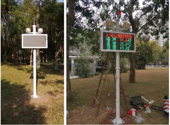 此套系統可采用網絡傳輸,對公園環境自動實時檢測噪音、溫濕度,通過LED顯示屏進行展示。全天候連續在線監測,讓公園的市民、游客在散步、放松、欣賞美景的同時通過環境噪聲監測信息,體驗到公園景區舒適健康的環境。