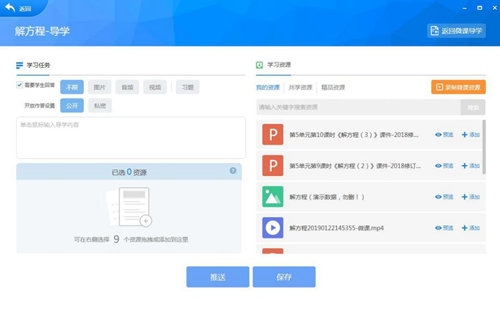 制作好的導學一鍵推送到學生空間,在正式課程開始前讓學生提前預習這節課的內容。