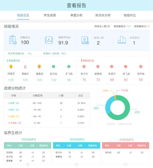 如果是需要反饋的導學,如測評、試卷、任務題等,還可以自動生成詳細的學情分析,方便老師詳細掌握學生預習成果,此后針對性的備課講課,有的放矢。