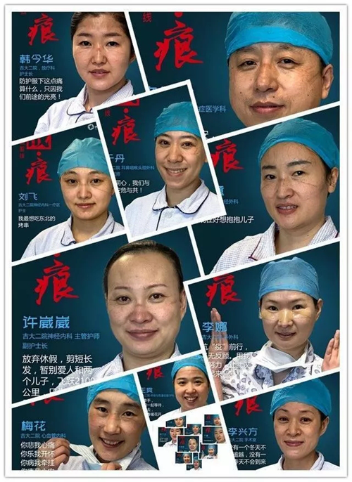 白衣戰(zhàn)士用血肉之軀鑄成防線隔著層層疊疊的防護設(shè)備我們也許看不清你的長相但是深嵌在鼻梁和耳后的勒痕被酒精和消毒液腐蝕的雙手......這些獨特的印記,是永遠銘記的勛章