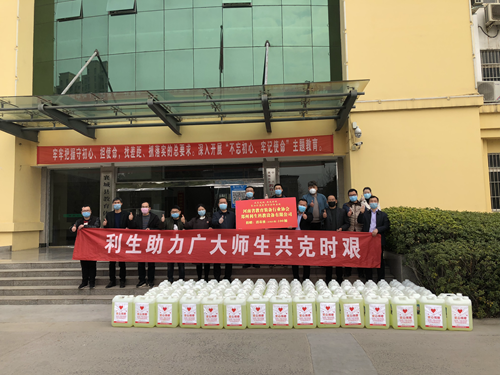 協(xié)會常務(wù)理事單位開封光大向開封市教體局捐贈洗手液1000kg,向息縣教體局捐贈75%酒精消毒液500kg, 向淮濱縣教體局捐贈75%酒精消毒液500kg。