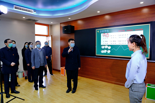 在鄭州外國語學校、鄭州市第一中學、省實驗中學和省實驗小學,刁玉華現場觀看了網課拍攝和錄制過程,與錄課教師和工作人員進行了親切交談,并代表省教育廳向全體錄課教師及工作人員致以衷心的感謝和崇高敬意,對鄭州市教育局以及承擔此次錄課任務的各學校在課程錄制過程中提供的教學指導、技術支持、后勤保障工作給予高度肯定。刁玉華強調,各單位在延期開學期間,要認真落實“停課不停學”要求,組織開展好線上及電視教學工作,要重視錄課教師及工作人員的安全防護,做好錄播教室消毒等工作,高標準高質量完成課程錄制任務,為堅決打贏教育系統新冠病毒疫情防控阻擊戰貢獻力量。