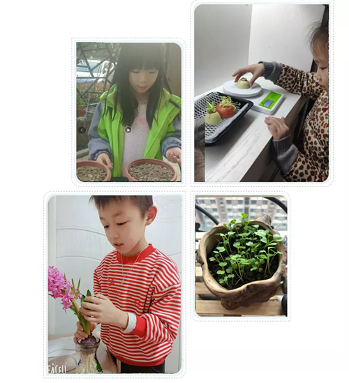 STEAM團隊老師與學生們線上“云探討”,線上學習種植知識,線下學生和家長之間親子合作,積極行動起來,找來家里的種子,查閱資料梳理信息制定方案、設計種植區、設計產品、自制肥料......小小的陽臺、庭院、成了孩子們施展才能的場所。學校智慧農場的隊員們用視頻的方式與小伙伴分享自己改良土壤、種植植物的經驗與體會。 學習活動不僅增長了學生們的種植知識、種植能力,更是傳遞一種健康、綠色生活理念,讓孩子們把綠色種進心間。