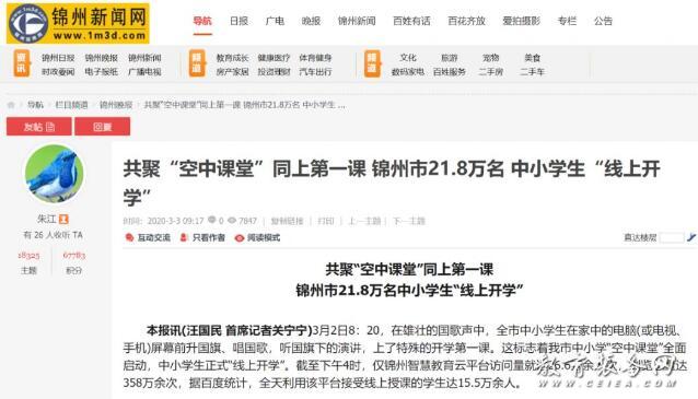 3月2日,這一天,是遼寧錦州市正式開學的日子。然而,21.8萬名學生,卻絲毫不受疫情的停課阻礙,共聚“空中課堂”,遠程同上第一課。