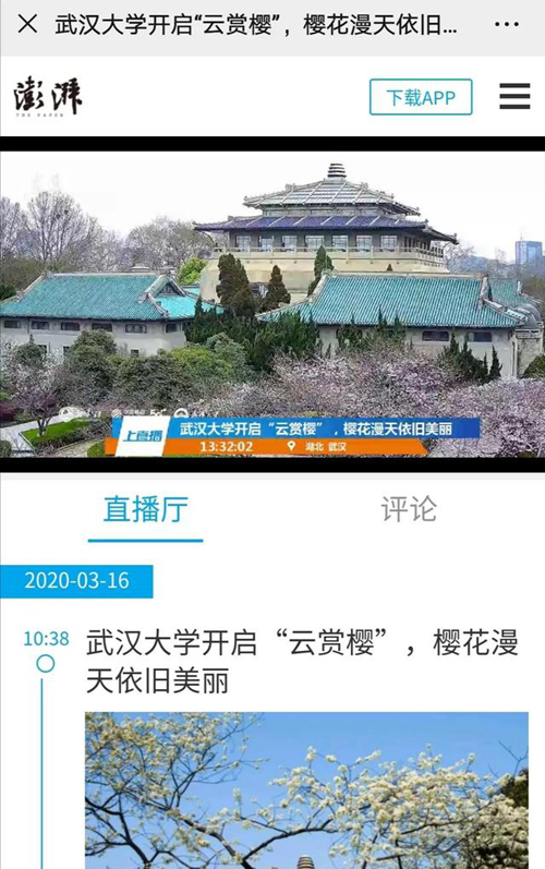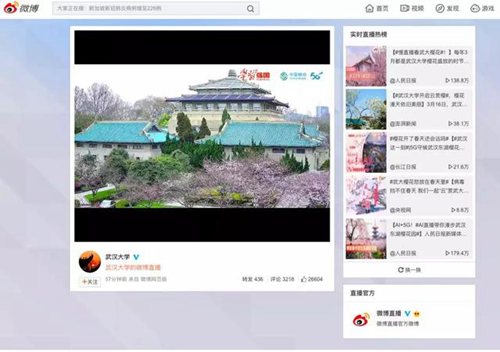 微博APP搜索“武漢大學(xué)”,進(jìn)入實時直播。
