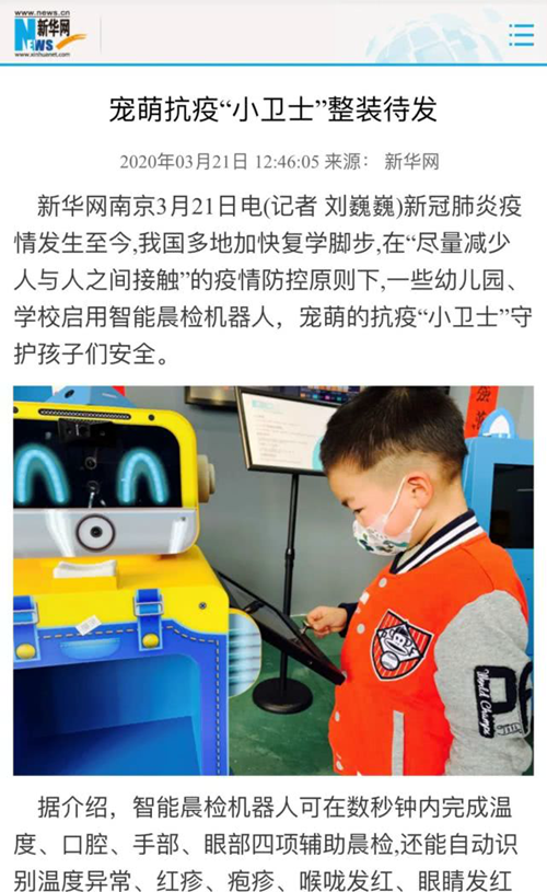 霸屏了!中國日報海外版、新華網、網易新聞等媒體紛紛報道這款晨檢機器人!