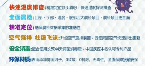 沃柯雷克晨檢機器人作為人工智能技術在晨檢領域的突出代表,迅速啟動一級防疫升級,以防疫性、功能性、精準性、智能性、體驗性等特質,率先在產品上加載了針對疫情的種種升級措施,助力幼兒園科學晨檢,筑起綠色健康屏障。