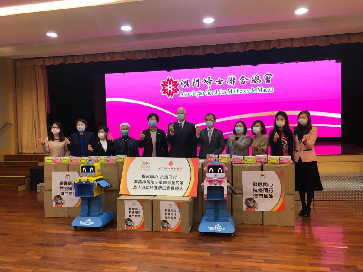 澳門美高梅向當地婦女聯合總會捐贈10臺沃柯雷克晨檢機器人 助力校園防疫