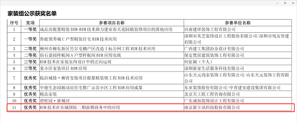 新立訊獲首屆中國建筑裝飾BIM大賽優(yōu)秀獎