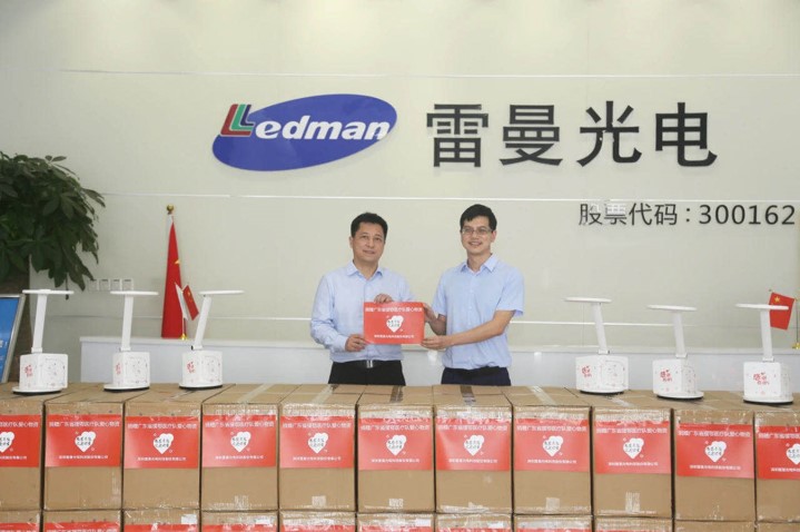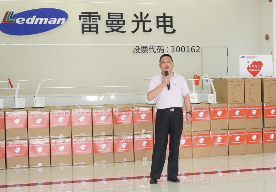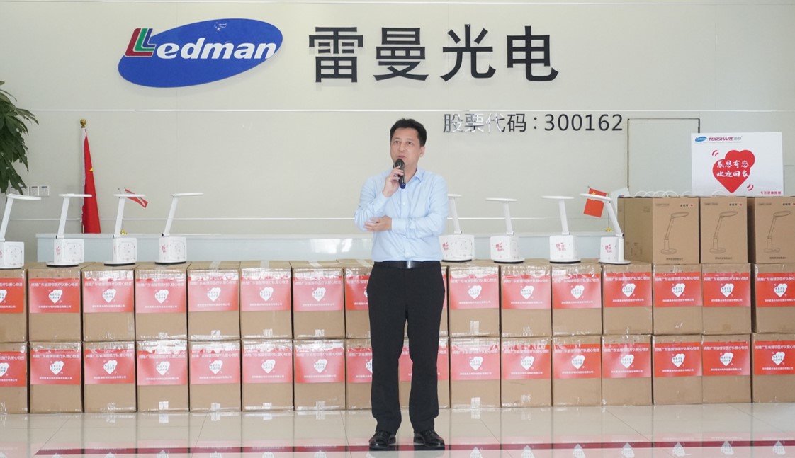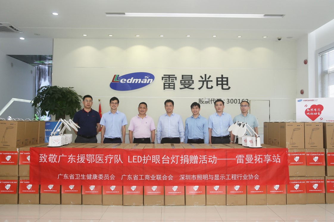 4月29日下午,由深圳市照明與顯示工程協會聯合廣東省衛生健康委員會、廣東省工商業聯合會共同主辦的“向廣東省援鄂醫護人員致敬 LED臺燈捐贈活動—雷曼拓享站” 愛心捐贈儀式,在雷曼總部一樓大堂隆重舉行。