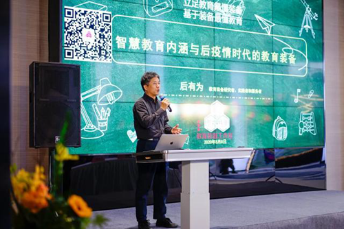 教育部教育裝備專家委員會專家、中國教育國際交流協(xié)會/教育裝備分會副秘書長后有為分享了他對智慧教育內(nèi)涵的理解,以及后疫情時代下教育裝備行業(yè)的發(fā)展趨勢。