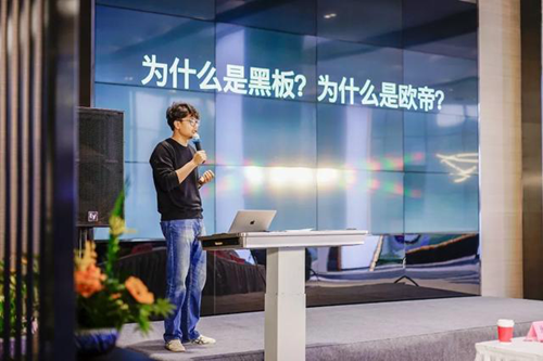 接下來就到了本次發(fā)布會的重點環(huán)節(jié)——新品發(fā)布。歐帝科技市場運(yùn)營中心總監(jiān)張青為大家現(xiàn)場揭曉歐帝新品:四代黑板、二代紅外一體機(jī)、智能講臺、6mm極窄雙屏、自研拼接屏等,并從用戶的角度分析歐帝新品如何提升教學(xué)體驗。