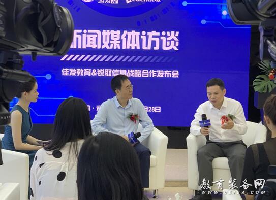 發(fā)布會(huì)現(xiàn)場雙方董事長接受行業(yè)媒體專訪,圍繞 “教考融合”戰(zhàn)略合作對(duì)媒體提問進(jìn)行解答。此番跨界融合將勢必引領(lǐng)教育領(lǐng)域新一輪資源整合浪潮,引領(lǐng)教育新生態(tài),攜手打造更多智慧教育應(yīng)用。