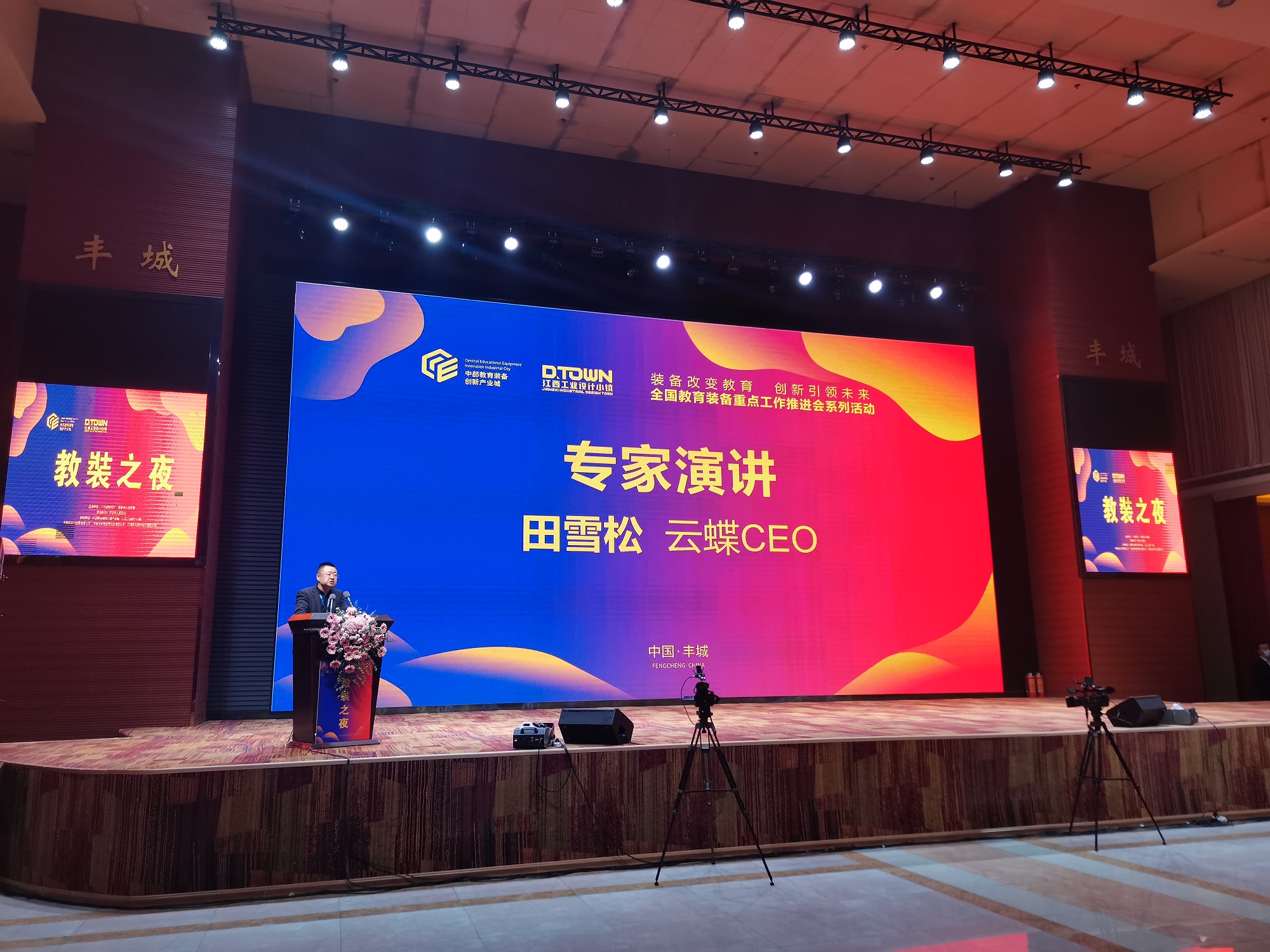 云蝶科技項目是中部教育裝備創新產業城的重要產業合作項目,得到了豐城市各級領導的大力支持。在當天下午舉行的全國教育裝備重點工作推進會分論壇上,云蝶科技總裁田雪松博士受邀做了題為《走向數據驅動的現代教育治理》的演講,為嘉賓們展示了教育大數據在應用領域的理論依據與實踐指導。在當晚的教裝之夜活動上,田博士也做了簡要的發言。