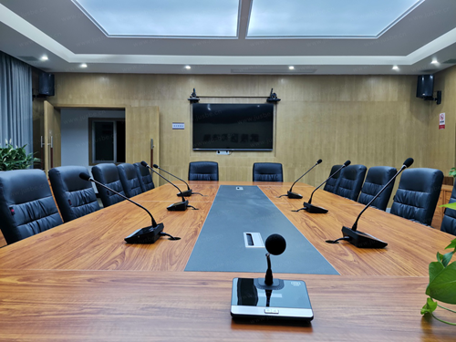新辦公樓大小會議室,主要承擔著語言類會議擴聲用途,因此,會議室統一采用JUSBE數字討論型會議系統。此套系統以數字技術為核心,具有先進先出/后進先出/全開放/申請/主席模式等多種會議模式,會前可設置發言數量、自動關閉、聲控發言,管控非常便捷。會議討論單元防干擾設計,話筒靈敏度高,音質佳,發言人無需近距離靠近話筒即可輕松完成聲音拾取,達到各類工作會議、座談會、總結報告、研討會的使用需求。