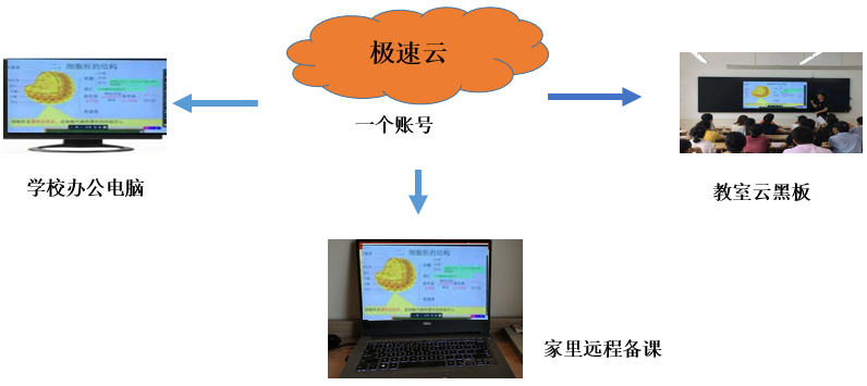 極速云不僅可以讓智慧黑板之間互連互通、協(xié)同教學(xué),還可以將歐帝智慧黑板、辦公電腦、家用電腦相連。老師不再需要將筆記本或者U盤帶到教室授課,只需要一個(gè)賬號(hào),即可接入云桌面,實(shí)現(xiàn)云教學(xué)、云備課。