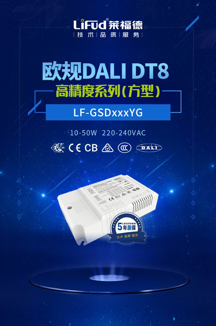 LF-GSDxxxYG是一款DALI恒流調光調色溫產品,功率覆蓋10-50W。該產品同時搭載Push調光,可實現不接入DALI系統也能0.1%~100%平滑調光、調光全程無頻閃、調光精度≤3%等優勢,給到用戶多種選擇,備貨更簡單。