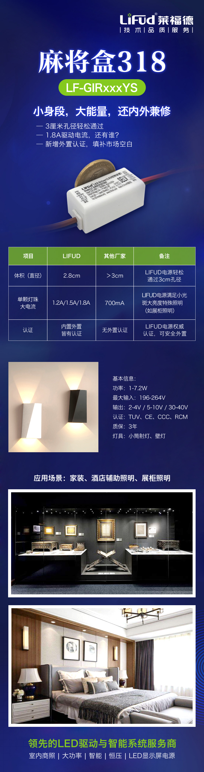 LF-GSDxxxPF是20年6月推出的一款6-40W的小體積DALI調光電源,最小W*H*L為30*20*142mm。該款產品在光亞展展出期間還吸引了云知光徐老師、恒坤彭總前來了解直播,最主要的原因在于該款產品的擁有一個特別的優勢——小體積+頂級認證。