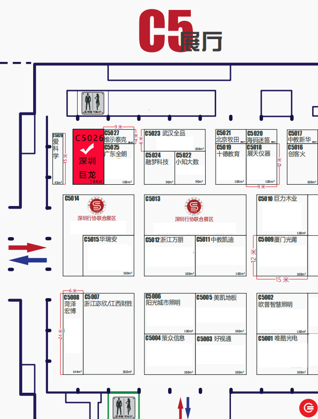 針對 C5 館 C5026 展位進行搭建設計方案,展位面積為144㎡(16x9m),具體搭建要求如下: