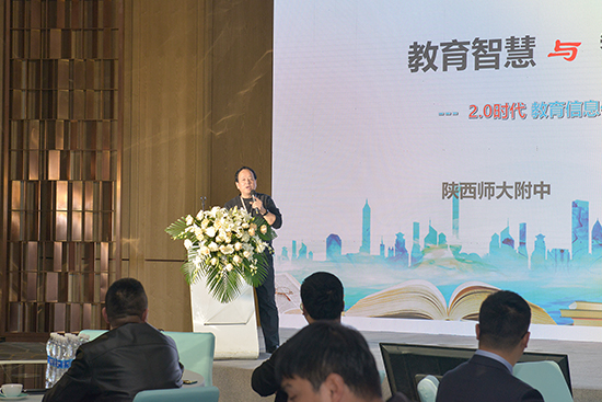 陜西省教育廳教育信息化試點指導(dǎo)專家,陜西省教育廳教育資源建設(shè)專家,陜師大附中高級教師,陜師大教肓技術(shù)碩士生合作導(dǎo)師,中國教育技術(shù)協(xié)會中小學(xué)協(xié)作會理事遆珠江先生為現(xiàn)場嘉賓解讀教育信息化發(fā)展趨勢。