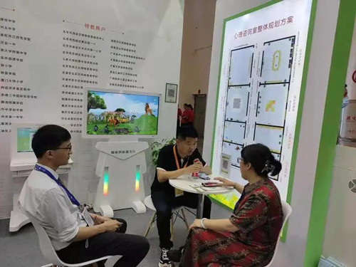 本次的展示會上,中盛普陽的展位共分為了三個區,分別是心理輔導室、資源教室以及自閉癥康復訓練中心。涵蓋了公司的產品研發團隊自主研發的心理健康信息化綜合管理系統(心理健康云平臺)、心理危機干預套裝、學業與生涯發展指導系統、自閉癥評估與訓練套裝、心智解讀與社會交往評估訓練套裝等專業性與實用性結合的軟硬件套裝。