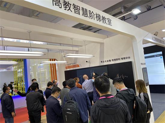 歐帝高教智慧階梯教室以第四代智慧教室黑板為核心,搭載智慧講臺、智能護眼燈、極速云等智慧教學產品及方案,為教學活動了提供人性化、智能化的互動空間,專為高教設計,滿足高等教育大課需求,現場吸引大批觀眾體驗。