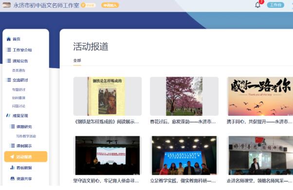 在空間里,各位名師圍繞研修主題發起的研修通知、專題討論、活動設計、案例分享以及成果展示等過程性資料都會在空間進行保存。資源共享模塊中展示了成果型教學資源,包含文檔、PPT、視頻等各種格式,區域教師只需登錄個人空間便可下載觀摩學習,有效促進了校級資源、校本資源以及區域資源的生成共享。