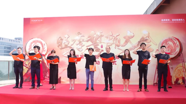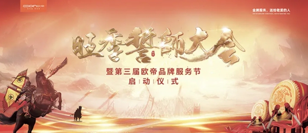 戰(zhàn)鼓聲聲催奮進,旌旗獵獵踏征程。授旗環(huán)節(jié),在激昂的戰(zhàn)鼓聲中,歐帝產(chǎn)品、技術(shù)、品質(zhì)、項目服務(wù)四大部門負責人接過周總轉(zhuǎn)交的戰(zhàn)旗,保證完成金牌服務(wù)任務(wù)。