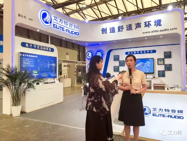 這場熱鬧的盛會上,艾力特音頻副總經理陳紅梅女士也接受了采訪,在現場為大家介紹了專業的聲學材料資源共享平臺Ecouster 聲學空間設計師。