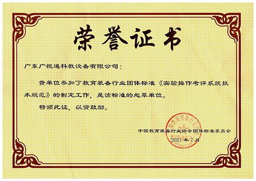 近日,中國教育裝備行業(yè)協(xié)會(huì)團(tuán)體標(biāo)準(zhǔn)委員會(huì)頒發(fā)了《實(shí)驗(yàn)操作考評系統(tǒng)技術(shù)規(guī)范》起草制定單位證書,廣東廣視通科教設(shè)備有限公司參加了本規(guī)范標(biāo)準(zhǔn)的制定工作,是該標(biāo)準(zhǔn)的起草單位。