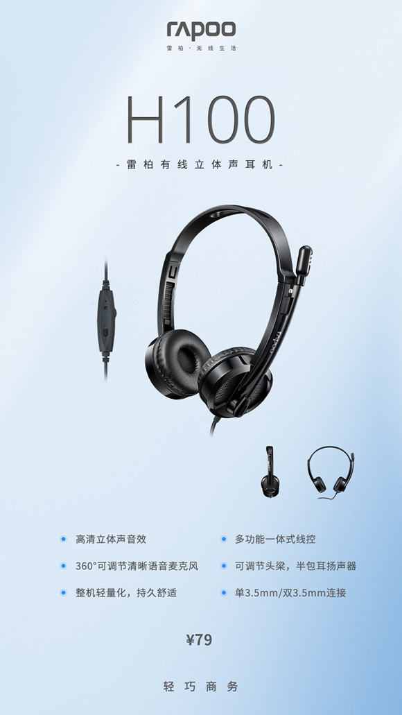 近日,領軍國產外設品牌,實力大廠上市企業Rapoo雷柏,推出了H100有線立體聲耳機,采用輕量化設計,持久佩戴無壓力;高清立體聲揚聲器、半包式耳罩,聽音更清晰;360°可調節降噪麥克風,收音更清晰,具備兩種連接方式,配備多功能一體式線控,專為學生老師上網課、話務客服語音對話準備,感興趣的朋友千萬別錯過。