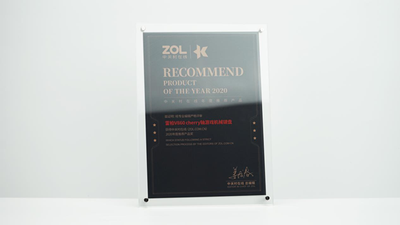 ▲ZOL中關村在線2020中關村在線年度推薦產品:雷柏V860cherry軸游戲機械鍵盤