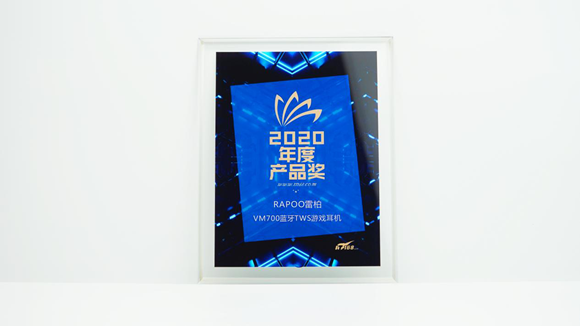 ▲游俠網2020第十二屆風云榜年度游戲硬件:雷柏VM700藍牙TWS游戲耳機