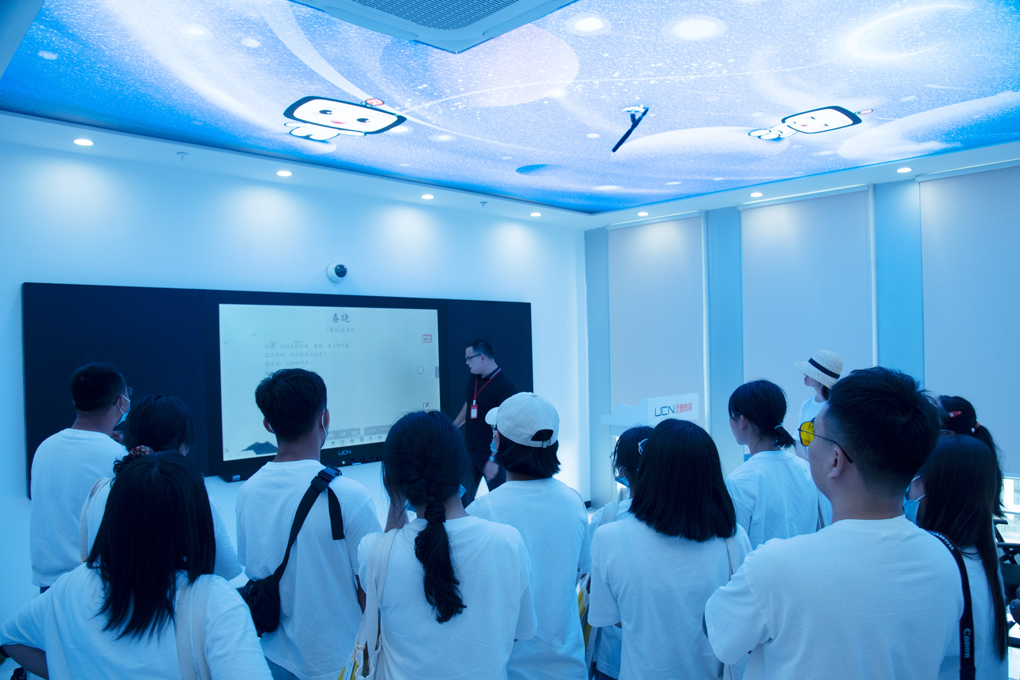 隨后,學生們在公司內部進行虛擬仿真實驗體驗。以UCN納米智能黑板為中心,在常態化教學的同時,輕松展現教學大綱中的每個實驗,讓知識過程化、生動化、可視化。UCN納米智能黑板寓教于樂,學生們在顯示屏上彈鋼琴、打架子鼓,引得贊嘆聲不斷。對學生來說,UCN納米智能黑板可以讓他們了解到學習的快樂。當學習不再是一件痛苦枯燥的事情時,學生就會積極自主的學習了。